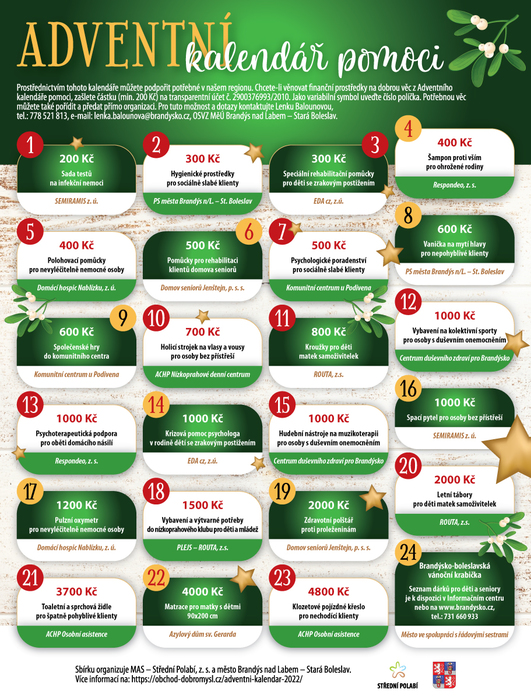 Již pátým rokem jsme připravili Adventní kalendář pomoci. Tento kalendář nabízí 24 okének