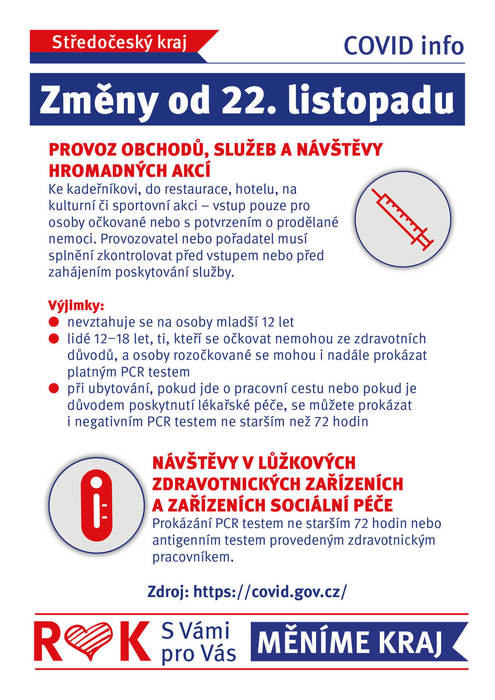 S účinností od 22. listopadu vstupují v platnost nová opatření proti covidu.