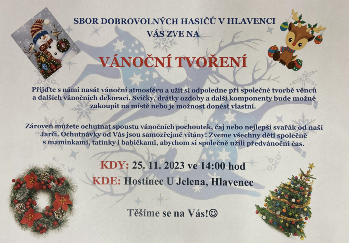 V sobotu 25. listopadu se můžete těšit na vánoční tvoření v hostinci U Jelena.